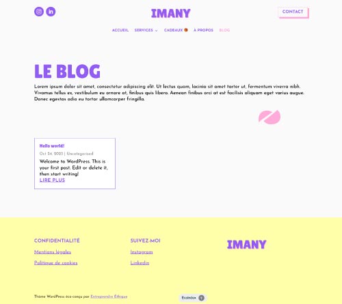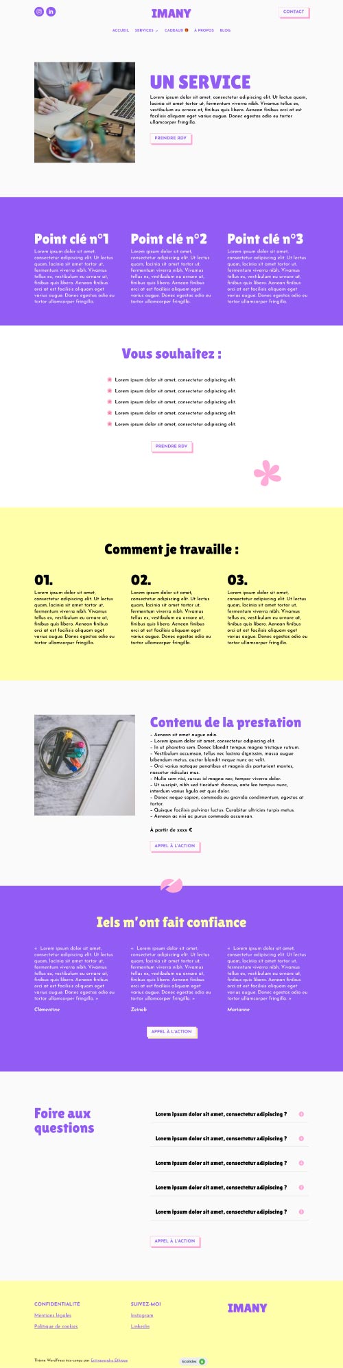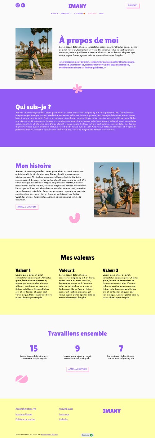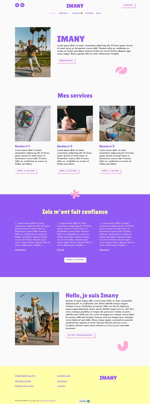 Un template de site web pour les freelances et indépendant·es : consultant·es, copywriter, rédactrices web, assistante virtuelle, bras droit, ... Idéale si : tu proposes des services en présentiel et/ou en ligne.